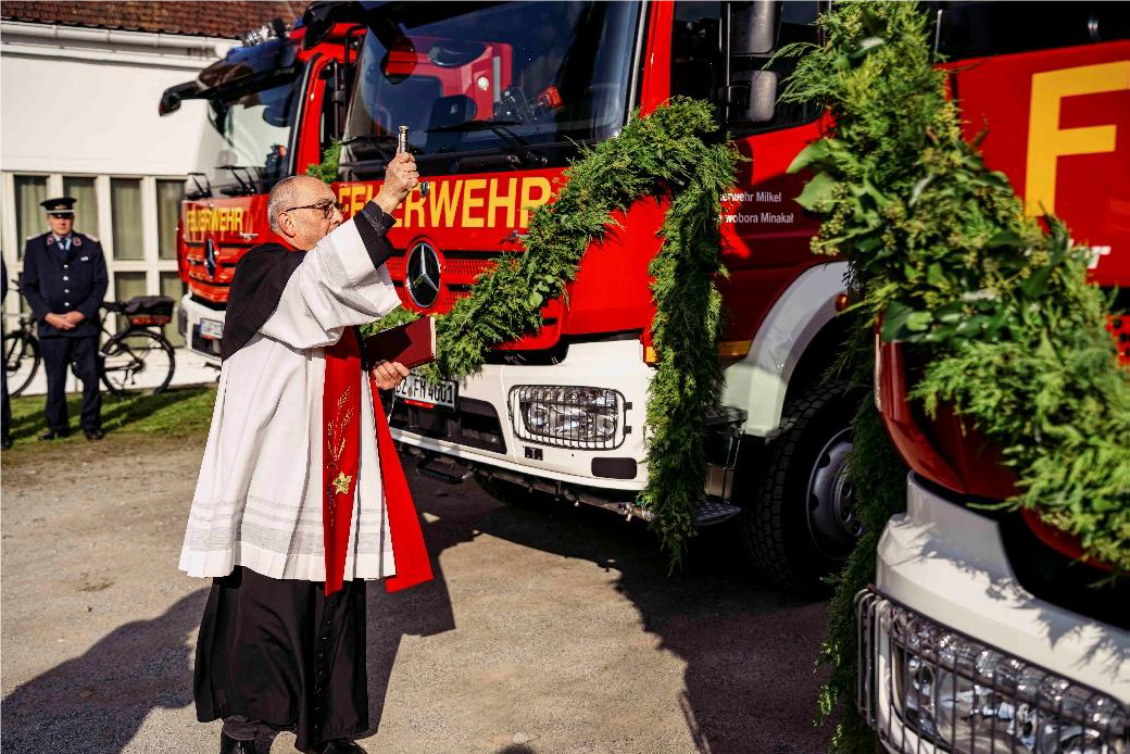 Přepodaće dwejoch nowych wohnjowoborowych awtow Übergabe von zwei neuen Feuerwehrfahrzeugen